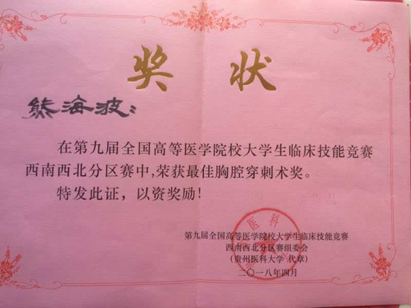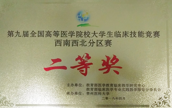 4月12-13日,贵州医科大学承办的第九届全国高等医学院校大学生临床技能竞赛西南西北分区赛落下帷幕,我校代表队获得了团体赛二等奖和三个单项操作奖。