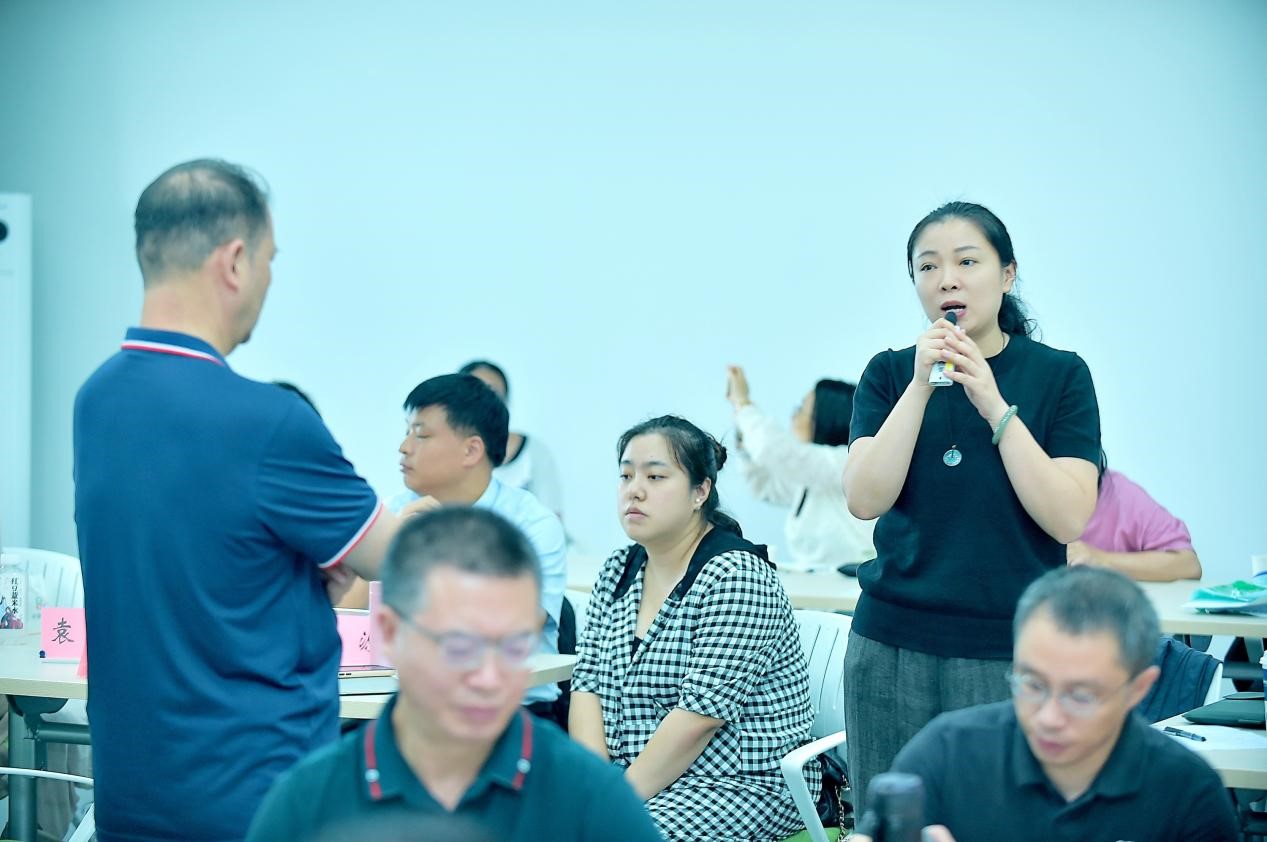 接下来工作坊转入小组协作学习环节。老师们按不同学科分成6个组,每组10人,围绕各自准备的课件进行深入讨论与修改。在小组协作过程中,老师们积极交流,各抒己见,共同探讨优化课件设计的策略。董教授也深入各组,与老师们亲切互动,提供宝贵的指导和建议,帮助大家更好地理解和应用大思政一流课堂设计的理念。董教授对每个小组的展示进行了专业点评,既肯定了优点,也指出了不足,并给出了针对性的改进建议,让老师们受益匪浅。在反馈反思环节,老师们纷纷表示,通过此次工作坊,不仅学到了先进的教学理念和方法,还在与同行和专家的交流中获得了新的启发和思考。