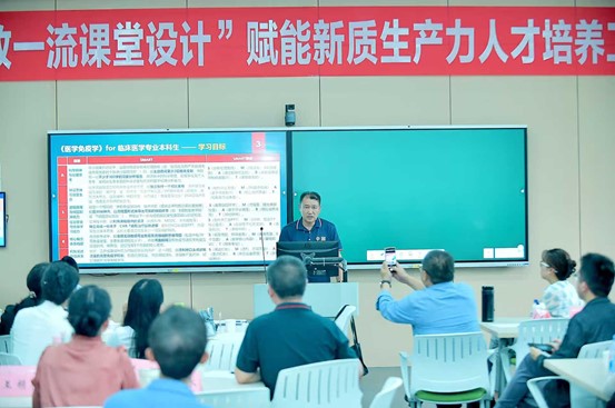 2025年9月27日至28日,由教务处教师教学发展中心主办、基础医学院承办的“大思政一流课堂设计”赋能新质生产力人才培养工作坊在A502教室顺利举行。此次工作坊特邀南方医科大学董为人教授来校授课,旨在提升教师课堂教学核心能力,打造卓越课堂,助力本科教育教学审核评估整改工作。各二级学院院长、教研室主任、专业负责人、学科带头人、校级督导专家及教学医院教师代表参加工作坊培训。