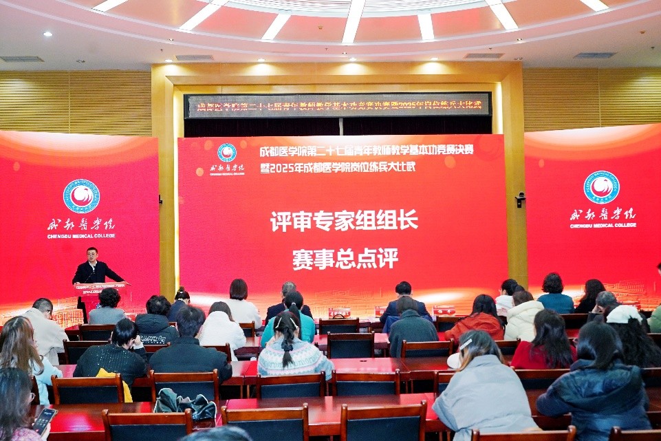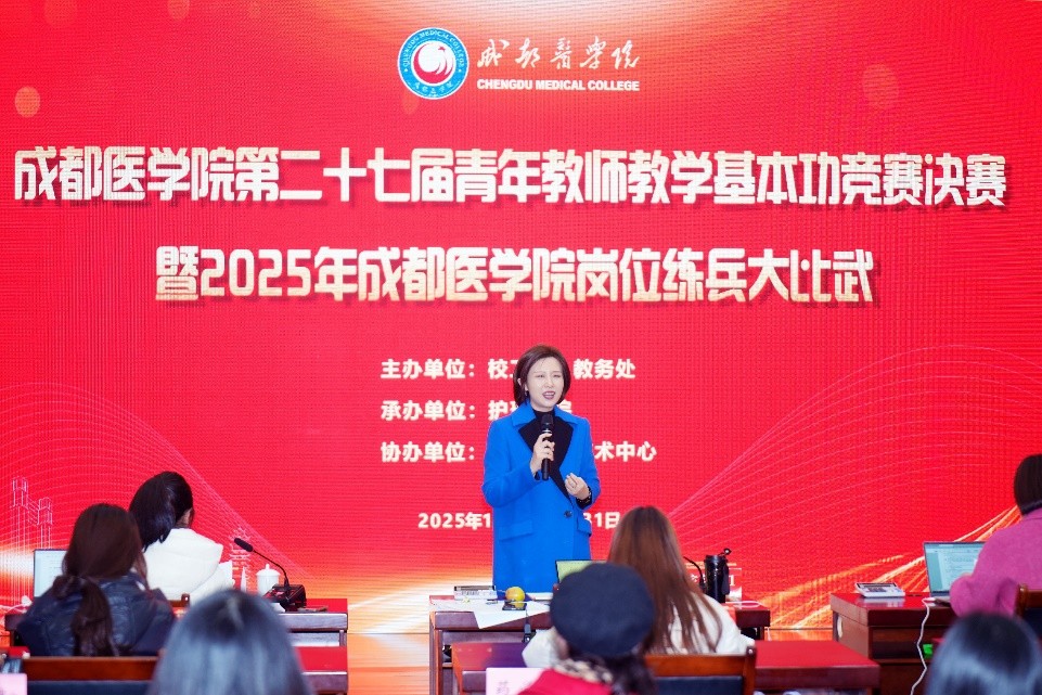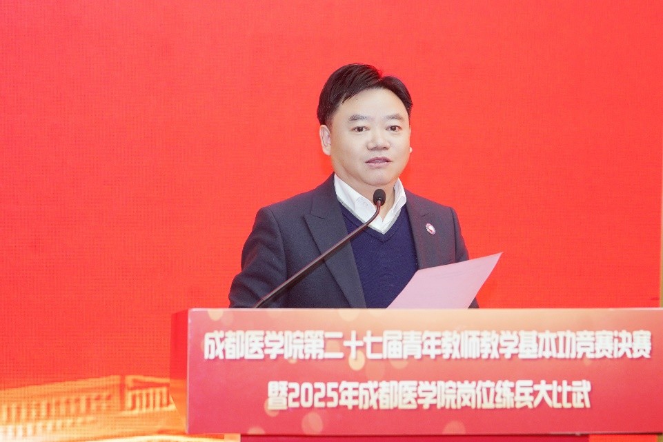 为深入贯彻落实立德树人根本任务,持续加强高素质专业化教师队伍建设,进一步锤炼青年教师教学基本功,12月30日至31日,学校成功举办第二十七届青年教师教学基本功竞赛决赛暨2025年岗位练兵大比武。本届决赛创新采用“现场授课+线上直播”双轨并行模式,27名经各单位层层选拔推荐的优秀教师同台竞技、各展风采,充分展现了新时代青年教师潜心育人、锐意创新的精神风貌。副校长张刚亲临活动现场指导,校工会、教务处、各学院负责人,以及校本部、临床教学基地教师代表和学生代表等200余人到场观摩。
