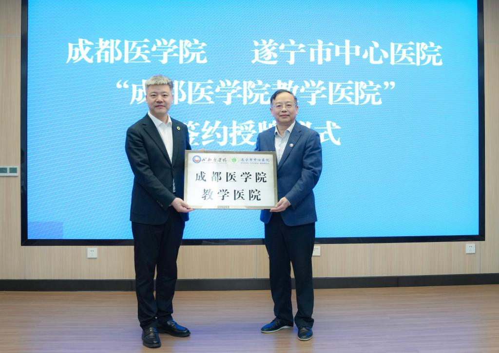 2026年4月10日,成都医学院副院长张刚与遂宁市中心医院院长何素玉签订合作协议,遂宁市中心医院成为“成都医学院教学医院”,医院党委书记杨宏伟从学院院长潘克俭手中接过牌匾。遂宁市人民政府副市长吴新春,遂宁市卫生健康委员会、学校和医院等单位的领导参加了仪式。