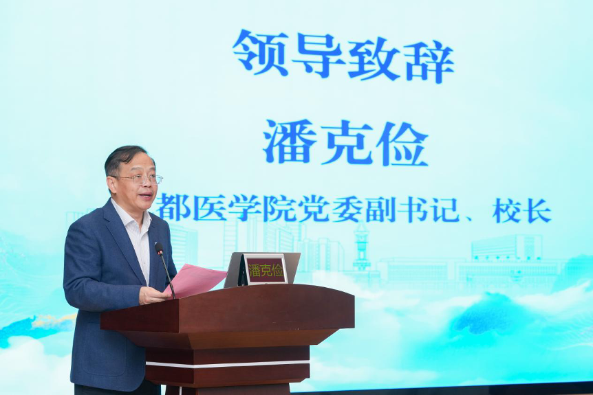 开幕式上,成都医学院党委副书记、院长潘克俭致辞,回顾了学校近年来在临床教学实践中取得的显著成效,指出当前中国高等医学教育已进入全新发展阶段,院校双方应持续加强医教协同,建立更高层次、更规范化的医学人才培养体系;各附属医院、教学医院加快推进高质量发展,促进优质医疗资源向优质教学资源转化,培养更多高素质临床医学人才,产出更多标志性合作成果,共同谱写校院协同的新篇章,为健康四川、教育强省建设贡献更大力量。成都医学院党委常委、副校长张刚主持开幕式。